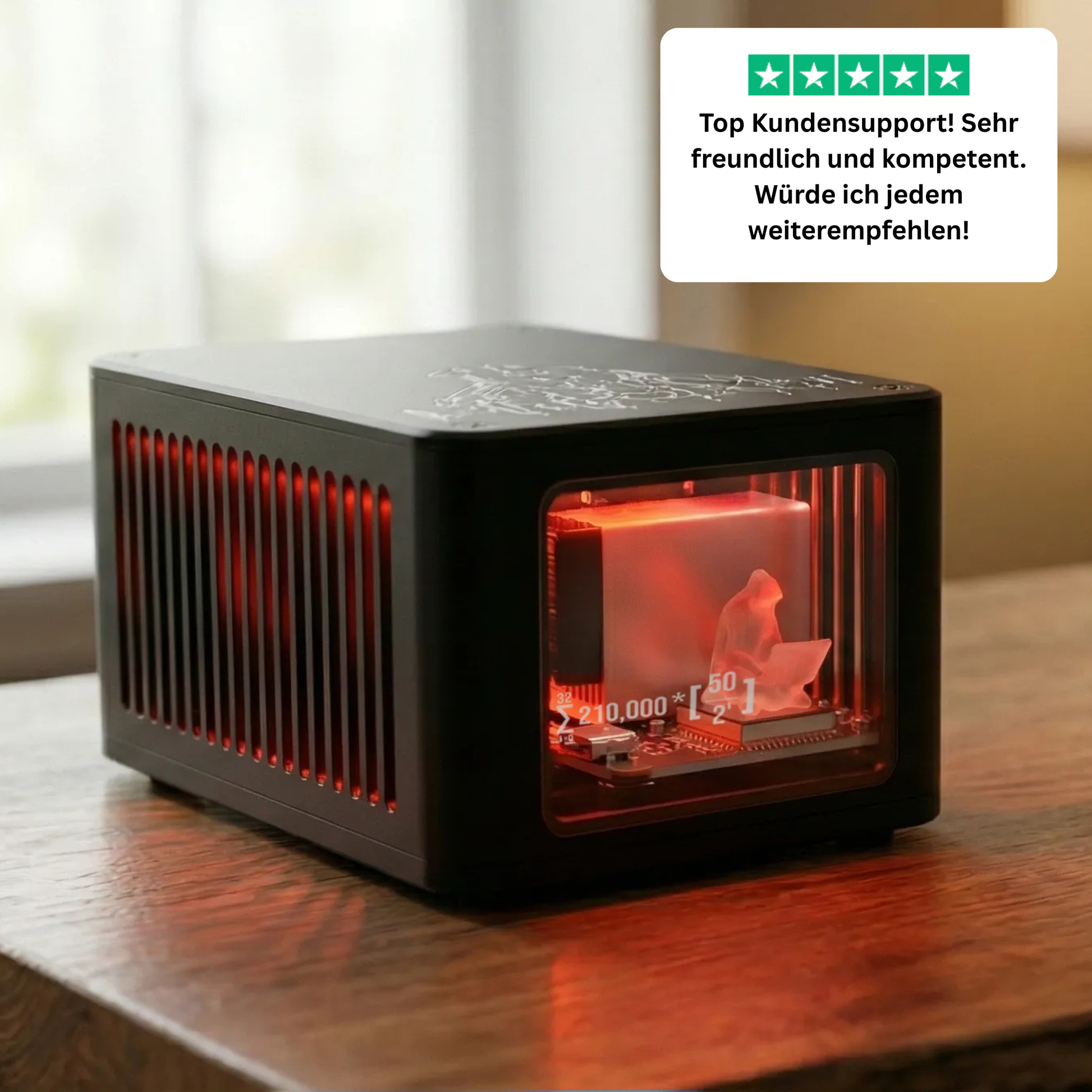 Highlight: Glasfront mit Bitcoin Formel + integrierte Satoshi Statue, Dual BM1370 ASIC ( Fabrikneu )